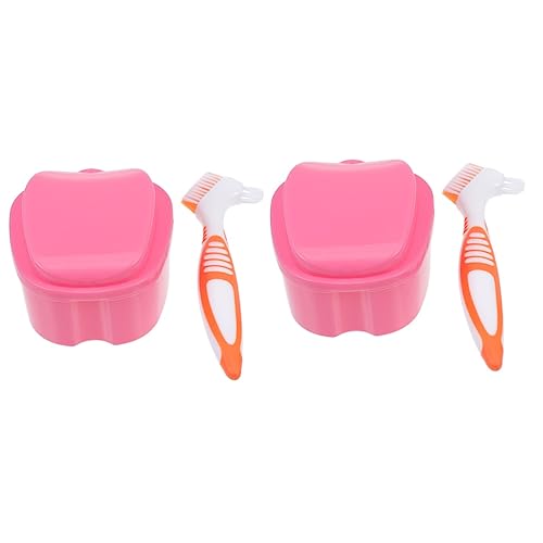 Lurrose 2 Set Falso Set Di Spazzolini Da Denti Spazzola a Setole Morbide Per Protesi Caso Di Protesi Per Le Donne Caso Di Fermo Supporto Per Protesi Addominali Viaggiare Paradenti Staffa