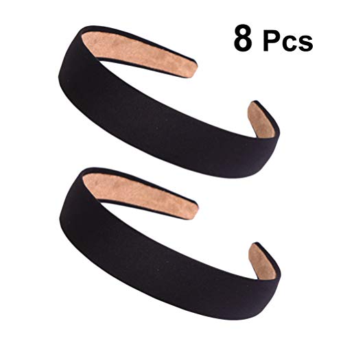 Lurrose, 8 fasce per capelli larghe e rigide, senza denti, colore puro, accessorio per capelli per donne e ragazze (nero)