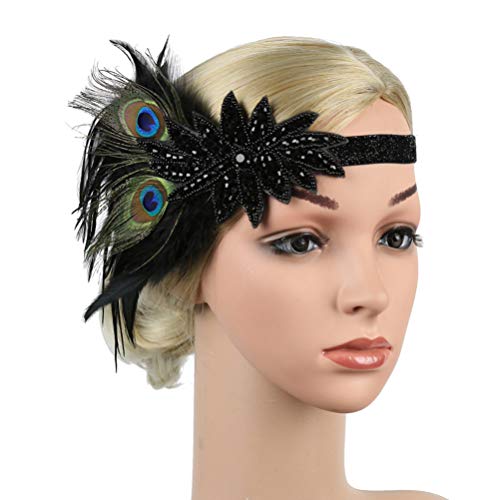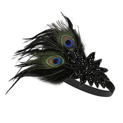 Lurrose Fascia in Piuma di Pavone Vintage Anni '20 Flapper Fascia Gatsby Copricapo Fascia per Capelli Copricapo Accessorio per Capelli per Donna