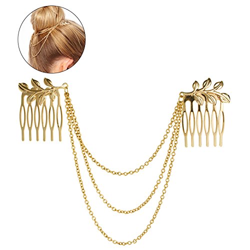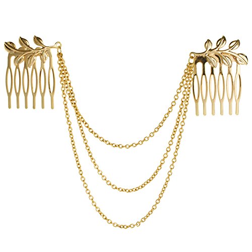 Lurrose Pettini laterali per capelli da sposa con frange a catena, nappe, fascia per capelli, accessori per capelli da donna