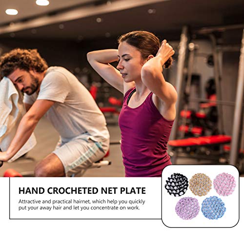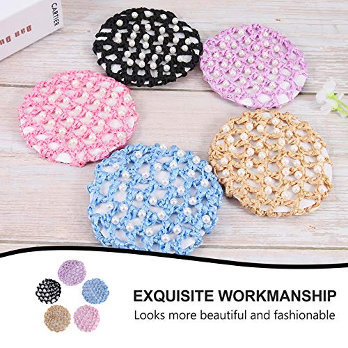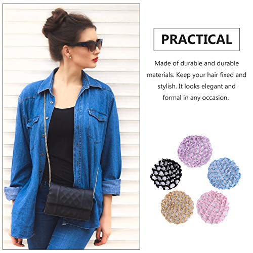 Lurrose 5 pezzi di rete di capelli spessi elastici con perline Decor copertura di capelli colorati per la danza