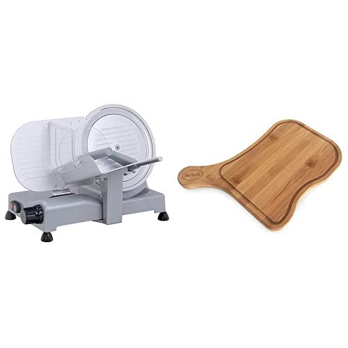 RGV LUSSO 25 GL Affettatrice Elettrica, Lama Diametro 25 cm, 140 watts, Alluminio, Colore Argento + Tagliere, Legno Naturale Bamboo, 0