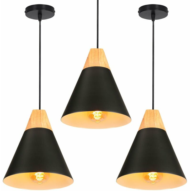 Lustre Sospensione Deisgn in Ferro e Legno 22cm Set di 3 Lampada Plafoniera per Hotel Camera Cafe Nero