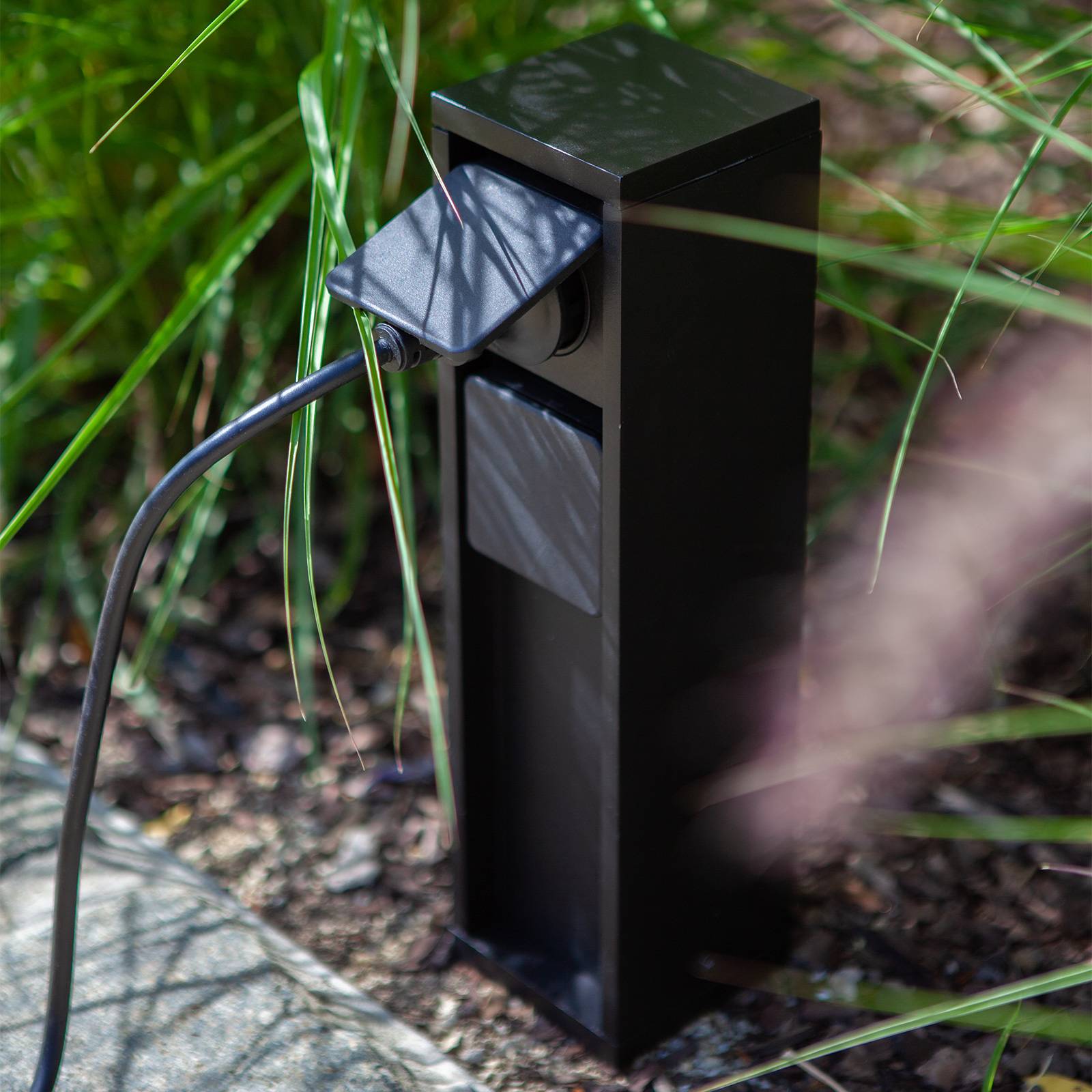 Per l'alimentazione elettrica per uso esterno: Colonna presa di corrente Due prese per il collegamento di attrezzi da giardinaggio come tosaerba, tagliasiepi, scarificatori ecc. sono integrate nella colonna della presa di corrente, che può essere facilmente installata in qualsiasi parte della proprietà. In totale, le utenze possono essere collegate fino ad un'uscita totale massima di 3.500 W.