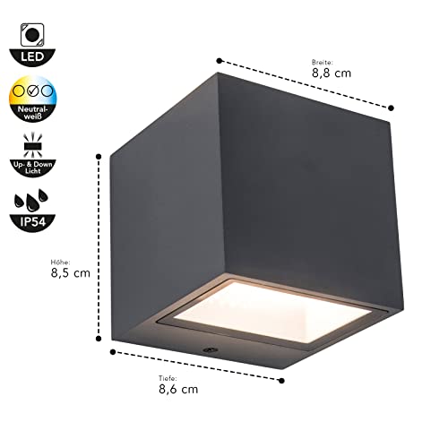 Lutec GEMINI - Lampada LED da parete per esterni, in alluminio pressofuso antracite, 8,8 x 8,6 x 8,5 cm