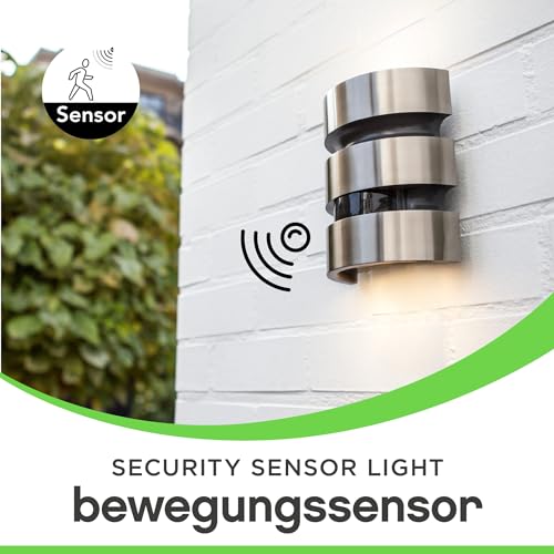 LUTEC Lampada da parete a LED Maya, lampada da parete con sensore di movimento, lampada da parete in alluminio in acciaio inox, illuminazione da giardino, 17 Watt, 1000 lumen, 3000 Kelvin, lampada da