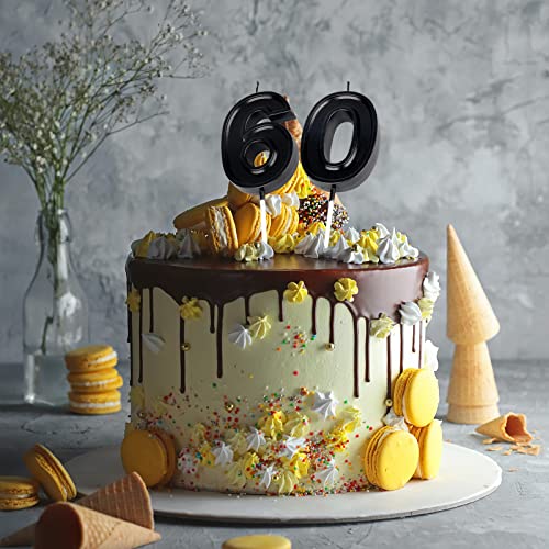 LUTER 7cm Candele di Compleanno con Numeri, Forma di Diamante 3D Numeri Candele Grandi per Torta di Compleanno Decorazione per Torte per Matrimonio Anniversario Laurea Festa Bambini Adulti (Nero)(6)