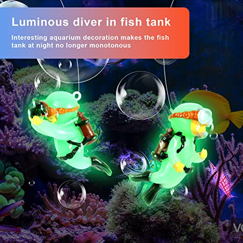 LUTER 2Pz Luminoso Decorazione per Acquario Subacqueo, 7x3x4cm Aquarium Ornament Sommozzatore per Acquario Decorazione Acquario Sub Piccole Subacquee Accessori per Acquari Interessanti (Verde, Bianco)