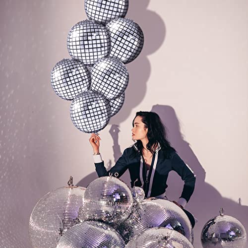 LUTER 6 Pezzi 56cm Grandi 4D Palloncini Discoteca, Palla da Discoteca Decorazione per Anni '70 Palloncino Metallico Palloncini a Specchio per Feste da Ballo Compleanni Festival Nuziali (Argento)