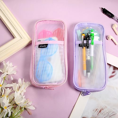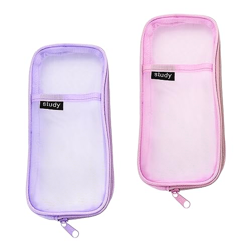 LUTER 2 Pezzi Astuccio Rete Trasparente, Multifunzionale Astuccio Trasparente con Zip Astuccio per Matite Astuccio per Cancelleria per Studenti Casa Ufficio Scuola (Rosa, Viola)
