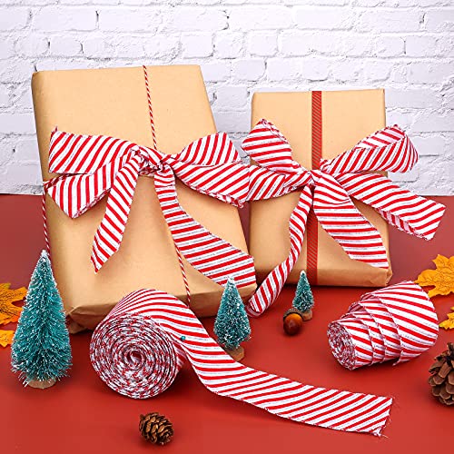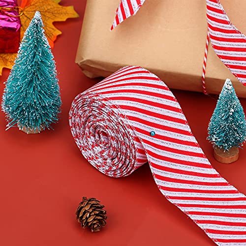 LUTER 2 Pezzi Nastro Metallico di Natale, con Glitter Nastro Natalizio Rosso e Bianco Ghirlanda di Nastri per Feste per Decorazioni per Interni ed Esterni Artigianato Fai Da Te (11m in Totale)