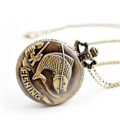 Luunay Bronzo Antico Pesca Pesce Orologio Ciondolo Catena Collana Pescatore Gioielli Regalo Collana Pesce Ciondolo Regalo Gioielli Per Amanti