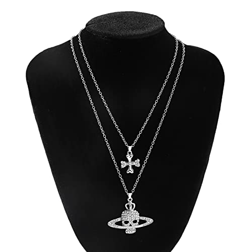 Luunay Collana Con Ciondolo Saturno Croce Con Teschio Con Strass Punk Collana Con Catena In Oro Da Uomo E Da Donna