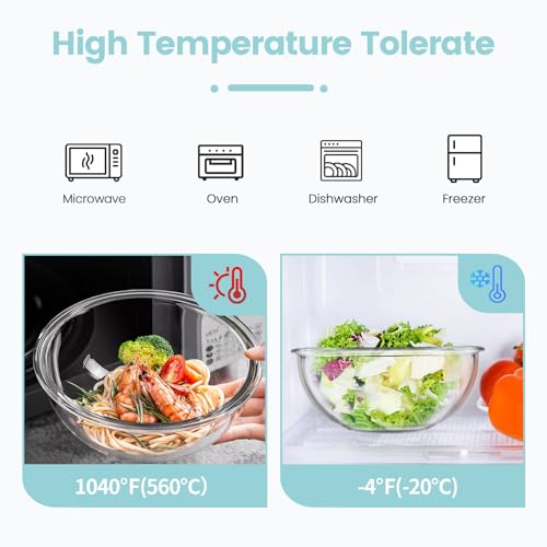 【Tolleranza alle Alte Temperature】: Le ciotole in vetro sono realizzate in materiale ad alto contenuto di borosilicato e tollerano da -20 a 560 ℃, l'uso diretto a microonde, forno, frigorifero e congelatore (escluso il coperchio)