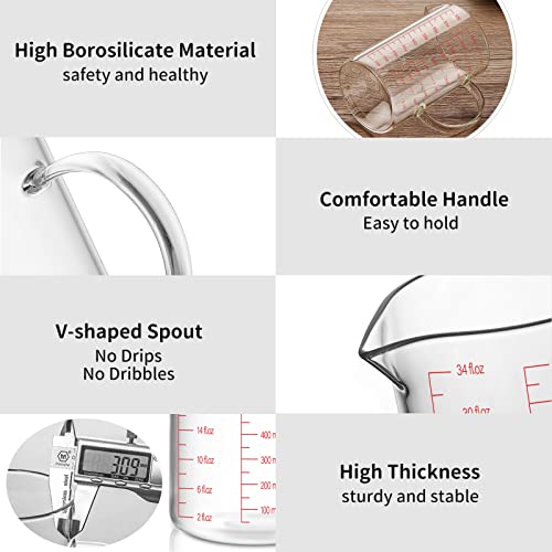 Luvan Misurino in Vetro (1 L) per Cucina o Ristorante, Materiale ad Alto Contenuto di Borosilice, Facile da Leggere
