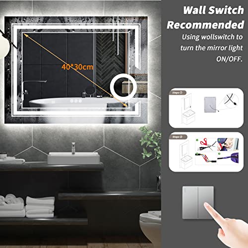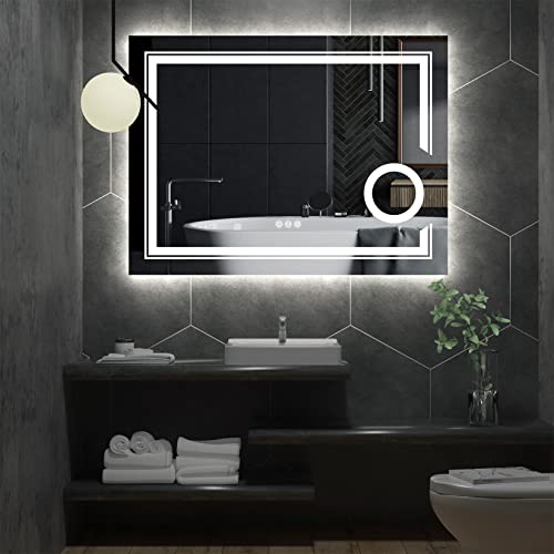 LUVODI Specchio da Bagno con LED Ingranditore: 3X Specchio Bagno Retroilluminato e Frontale Specchio Rettangolare 60x80cm - Specchio Bagno con Luce Led Parete Touch, Anti-appannamento