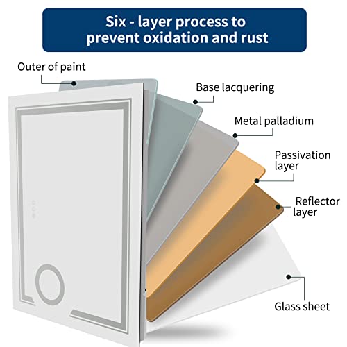【SPECCHI LED DELUXE DUE ILLUMINAZIONI, la doppia sorgente di luce ti offre un'esperienza di luminosità eccellente】: Il nostro specchio da bagno a led ha una doppia striscia luminosa: luce anteriore e retroilluminazione, doppia fonte di luce da 6100 lumen, durata fino a 50.000 ore. Gli specchi per immagini senza distorsioni ad alta definizione forniscono un aspetto più realistico.Tenere premuto il primo interruttore a sfioramento sullo specchio per regolare la luminosità dell'immagine.