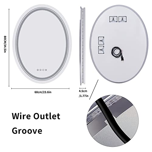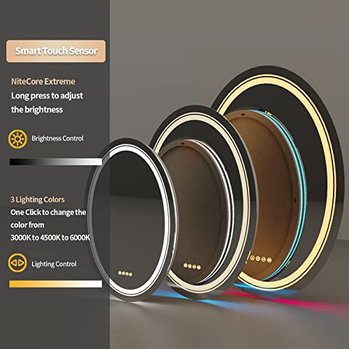 【Specchio ovale bagno led con regolazione continua con funzione memoria】La luminosità della luce anteriore e della retroilluminazione può essere regolata dalla funzione di regolazione continua, premere a lungo il pulsante per regolare la luminosità del 10-100%. La funzione di memoria registrerà la luminosità e il colore della luce prima di spegnerla e la ripristinerà all'accensione, risparmiando molto tempo. Lo specchio argento HD con LED ti offre uno specchio reale, CRI>95