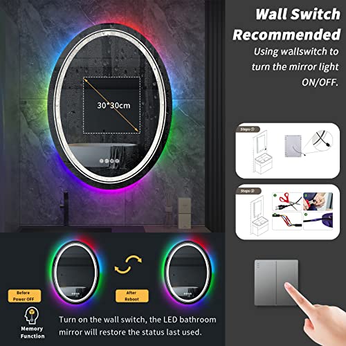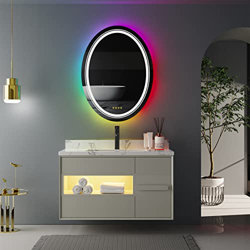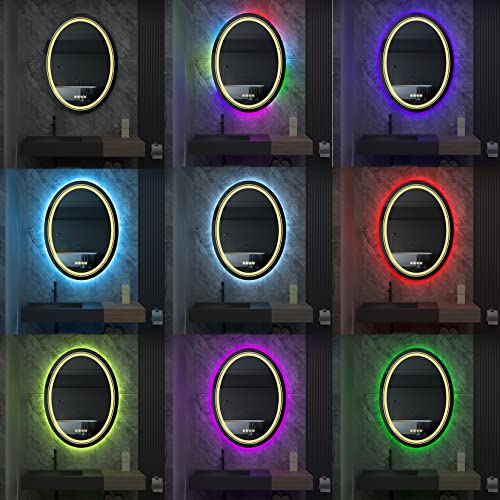 LUVODI Specchio da Bagno con LED RGB: Specchio Bagno Retroilluminato e Frontale Specchio Ovale Bagno - Specchio Bagno con Luce Led da Parete Touch, Anti-appannamento, Funzione Memoria, 60x80cm