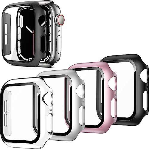LUVZOOR 4 Pezzi Custodie Compatibili con Apple Watch SE 2/SE/6/5/4 40mm, Protezione Vetro Temperato, Case Protettivo e Pellicola Protettiva per Apple Watch (Nero/Argento/Trasparente/Rosa)