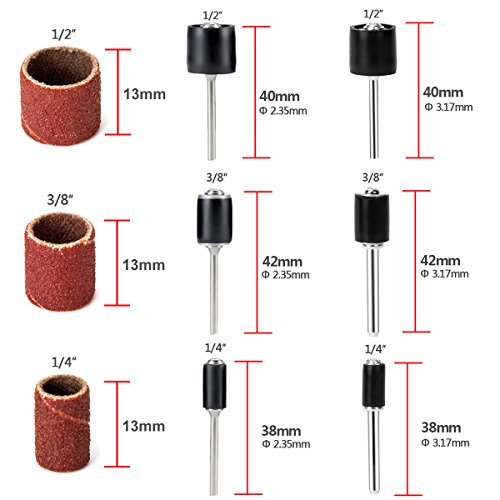 12 Pezzi mandrini a tamburo: Diametro: 1/2", 3/8" e 1/4", Lunghezza: 38mm, 40mm, 42mm, Diametro del gambo: 2,35mm, 3,17mm