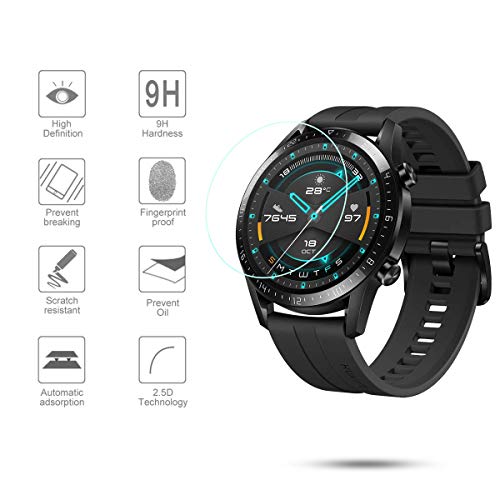 【 Design particolare & Facile da installare 】: appositamente progettato pellicola protettiva per HUAWEI Watch GT 2 (46 mm version).Utilizzando precisa tecnologia di taglio laser per offrire la massima copertura dello schermo. In vetro curvo, Smart guide Sticker rendere l' applicazione semplice e preciso, e senza bolle senza problemi.