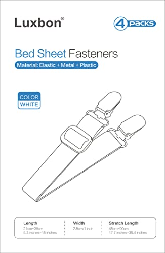 Luxbon Set di 4 Cinghie di Fissaggio Letto Elastici Bretelle Ferma Lenzuola a 2 Direzioni Bianca