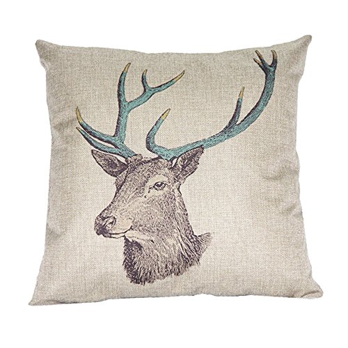 Luxbon Renna Federa per Cuscino in Contone Lino Copricuscino Decorativo per Casa Divano Sedia Stanza Letto 45 x 45 cm