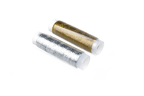 Fili oro e argento, speciali per ricamo, 85% viscosa e 15% poliestere.