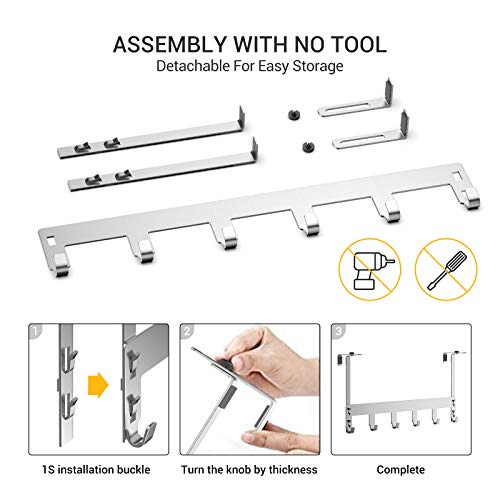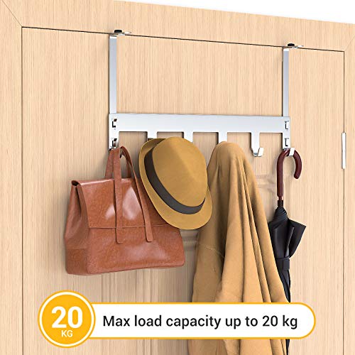 Luxear Appendiabiti da Porta Regolabile con 6 Ganci Attaccapanni Porta in Acciaio Inox MAX 20KG Appendino Porta per Camera da Letto Bagno Cucina Ufficio, Gancio Porta per Spessori da Porta 1-5 CM