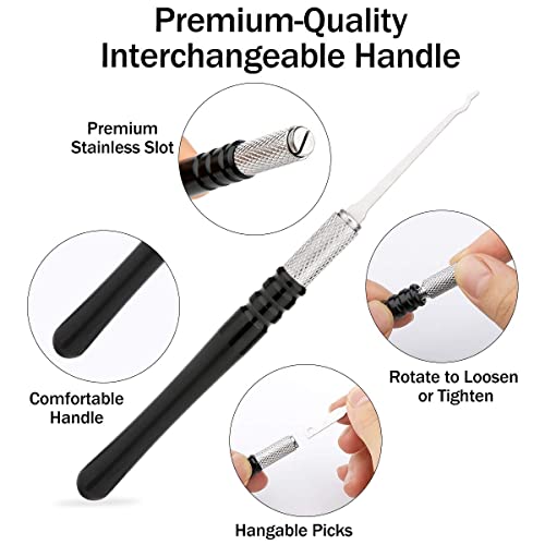 Picks di alta qualità in acciaio inossidabile: Questi plettri sono realizzati in acciaio inox liscio e avanzato, abbastanza stente per colpire la rottura. Ogni plettro combinato con un manico in plastica antiscivolo per una piacevole sensazione durante la presa