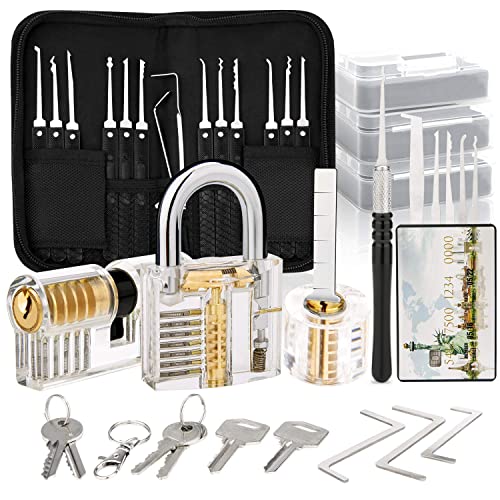 Luxebell Lock Picks 24 pezzi Lock Picking Set con 3 lucchetti trasparenti grimaldelli kit per principianti e professionale Lockpicker