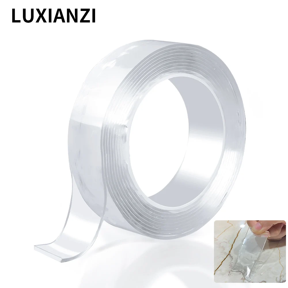 LUXIANZI 1/2mm Nano Double Tape 1/3/5M Reusable Waterproof Adhesive Strong Wall stickers For Bathroom kitchen NoTrace Sided Tape