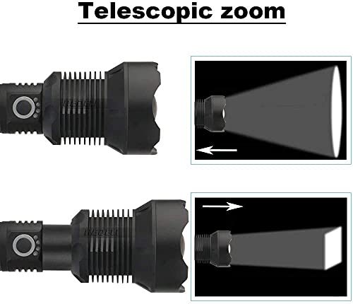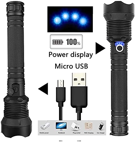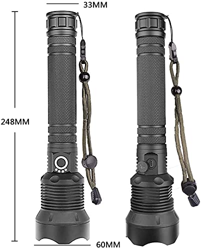 【Super Luminoso 20000 Lumen】Chip LED XHP70 avanzato integrato nella torcia a LED, che fornisce sempre una luce stabile e brillante. La distanza massima di irradiazione della torcia può raggiungere i 550 yarde, consente di utilizzarla come torcia tattica a lunga distanza. Provalo e lo adorerai.