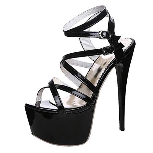 LUXMAX Donna Platform Scarpe Tacco Alto Donna a Spillo Sandali Cinturino Incrociato Tacco Altissimo (Nero) - 37 EU