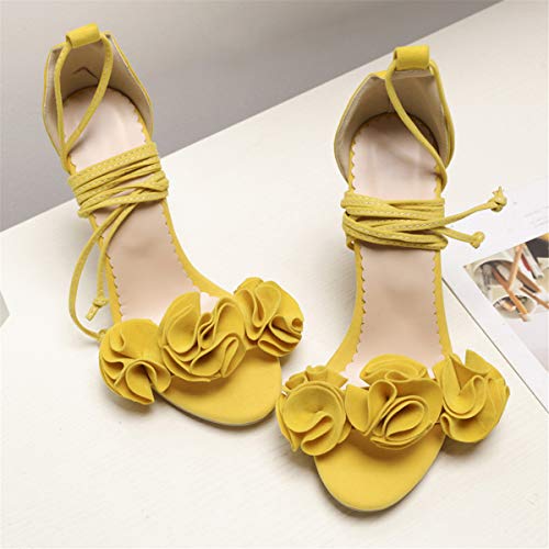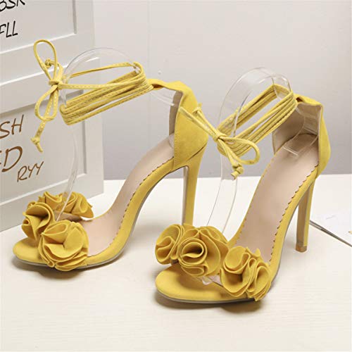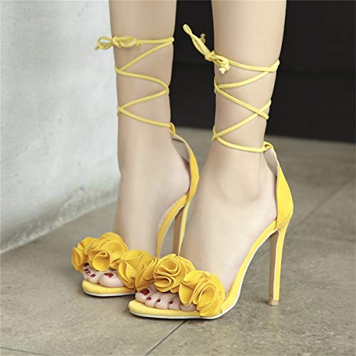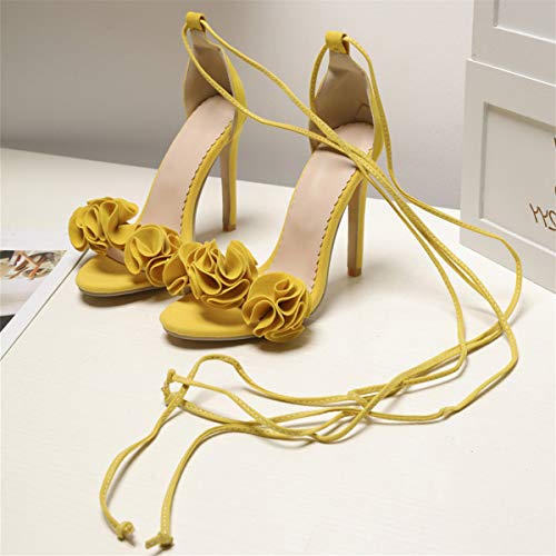 LUXMAX Donna Sandali Tacco Alto Stiletto Stringate Scarpe Fiori Tacchi a Spillo Punta Aperta (Giallo) - 36 EU