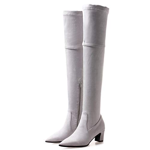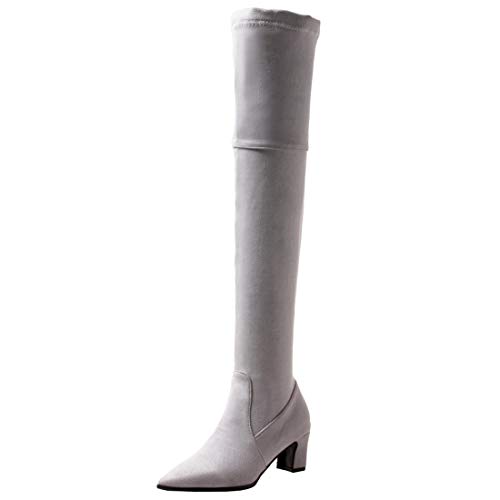 LUXMAX Donna Stivali Alti Sopra Il Ginocchio Tacco Medio Blocco a Punta Scarpe con Cerniera Stivali Lunghi (Grigio) - 42 EU