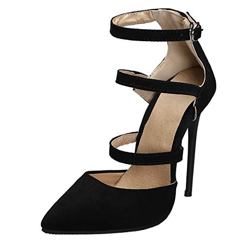 LUXMAX Scarpe Donna Decolte con Tacco Spillo Alto Tacchi a Punta Eleganti Decollete con Cinturino alla Caviglia (Nero) - 39 EU