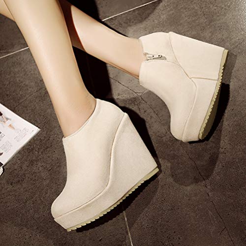 LUXMAX Stivaletti Zeppa Alta Stivali Donna Tacco Alto Plateau Scarpe con Cerniera Ankle Boots Inverno (Beige) - 36 EU