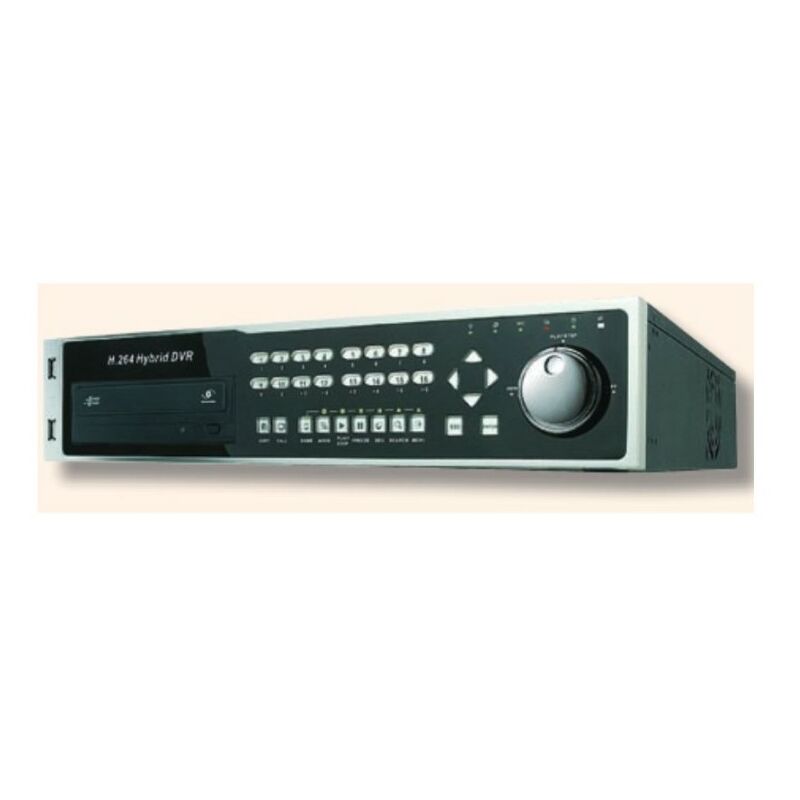 Registratore digitale ibrido 16 canali analogici e 8 flussi IP. Modalità: Pentaplex. Compressione: MPEG4/H264/MJPEG. Ingressi video: 16 BNC in loop. Aggiornamento dello schermo: 400 fps. Risoluzione di registrazione: 720 x 576 @ 50 fps - 720 x 288 @ 100 fps - 360 x 288 @ 200 fps. Ibrido: 8 canali IP. Audio: 16 ingressi audio. USB: 4 USB 2.0 (2 anteriori e 2 posteriori).