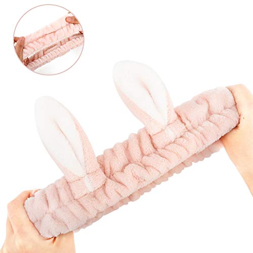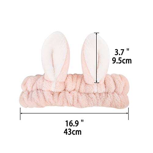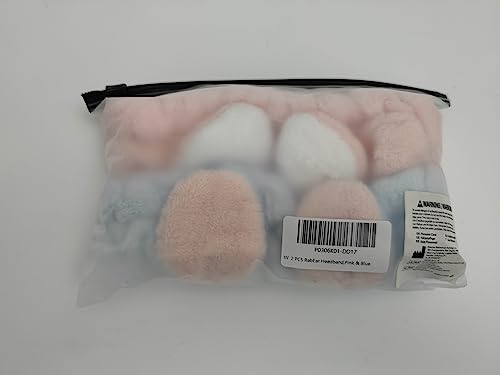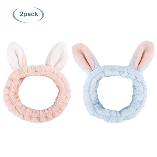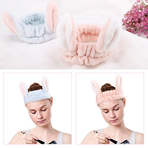 Luxspire Fascia per Capelli, [2 Pezzi] Fasce Per Capelli con Orecchi di Coniglio Fascia Carina per Capelli Maschera Facciale Trucco per Ragazze Donne - Rosa Blu