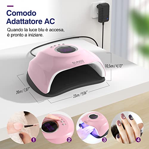 Luxspire Lampada per Unghie a LED UV, Asciuga Unghie Smalto Semipermanente 180W, Lampada da Tavolo per Unghie, Asciuga Smalto per Smalto Gel, con 4 Timer, Sensore Auto, per Salone Casa Scuola, Rosa