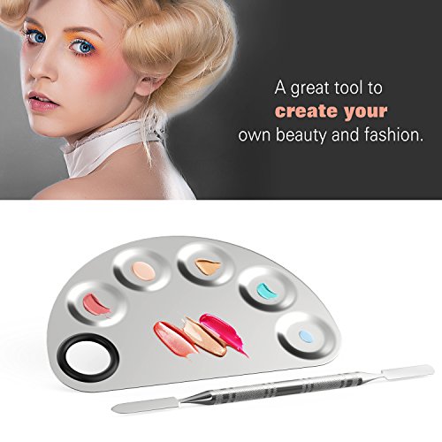 Luxspire Professionale Trucco Palette in Acciaio Inossidabile Con 5 Pozzetti Rotondi per Miscelare Cosmetici, Tavolozza Trucco Make Up Strumenti per Mescolare Fondotinta, Ombretti, Semirotondo