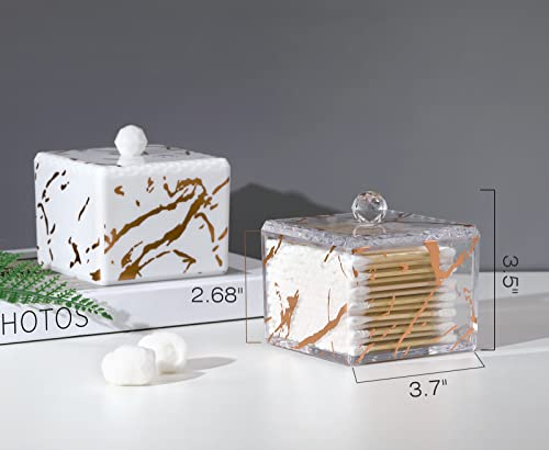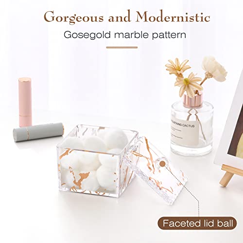Luxspire Scatola per Tamponi di Cotone, Scatola Quadrata in PS, Contenitore per Tampone di Cotone, Organizer per Cotton Fioc, Accessori per Batuffolo di Cotone, per Cosmetici - Trasparente + Oro Rosa