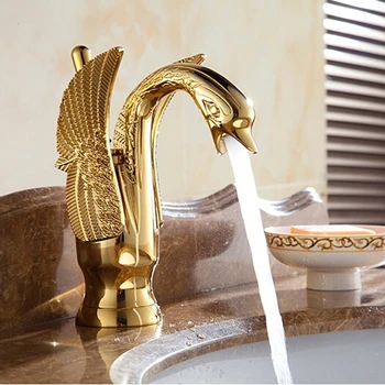 Luxury Copper Hot and Cold Water Taps Swan Faucet Golden Finished Basin Faucet Mixer Taps G1081