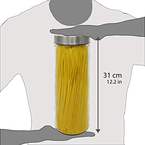 LG Luxury & Grace Set di 4 Barattoli di Vetro, 1,75 L (31x10 cm). Contenitori in Vetro Borosilicato con Coperchio in Acciaio Inossidabile.