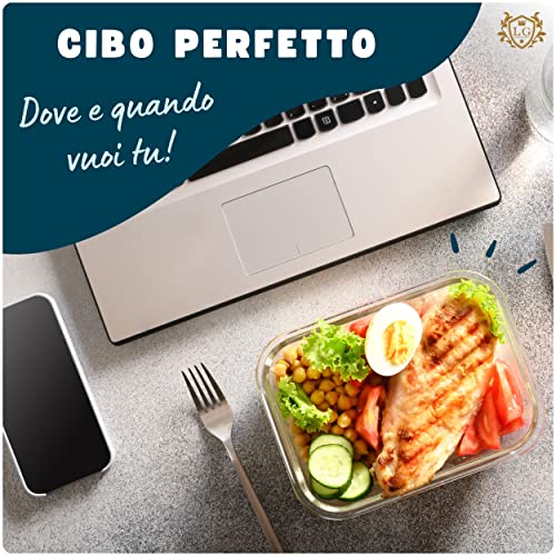TOP QUALITY. Contenitore per alimenti in vetro borosilicato altamente resistente. Progettato per resistere a urti, graffi e shock termici. Vetro sicuro per forno, microonde, lavastoviglie e congelatore. Senza BPA (bisfenolo A, una sostanza chimica dannosa per la salute e l'ambiente). Capacità: 600 ml. Dimensioni con coperchio: 18x13x6 cm.