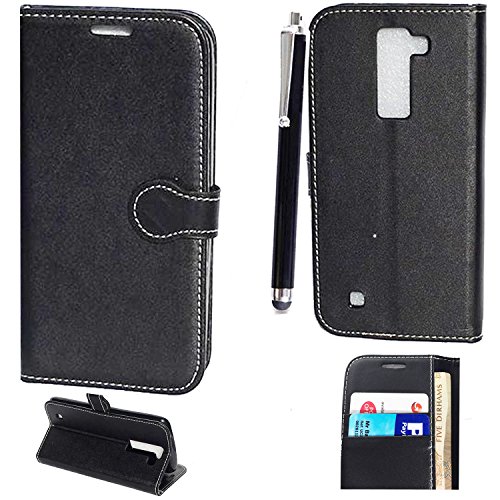 Luxury Portafoglio Protettiva Custodia in pelle per LG K8 Cover Caso + Stylus pen (Black Book)