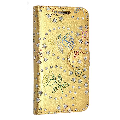Luxury Portafoglio Protettiva Custodia in pelle per Samsung Galaxy J5 J500 (2015) Cover Caso + Stylus pen (Glitter Gold Book)