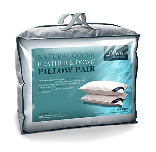 4 Luxury White Goose Feather & Down Pillows (2 Pairs) by Littens